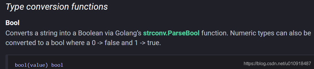 调用的是golang 的strconv.ParseBool()方法,源码如下:package strconv// ParseBool returns the boolean value represented by the string.