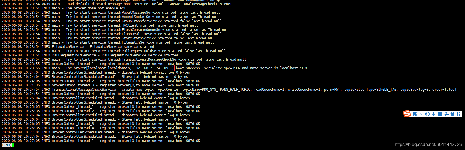 tail -f ~/logs/rocketmqlogs/broker.log