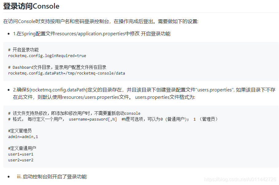 中文文档:https://github.com/apache/rocketmq-externals/blob/master/rocketmq-console/doc/1_0_0/UserGuide_CN.md