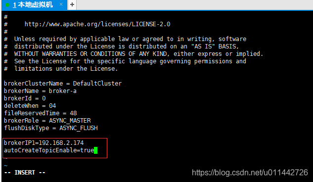 nohup sh bin/mqbroker -n 192.168.2.174:9876 -c conf/broker.conf autoCreateTopicEnable=true &