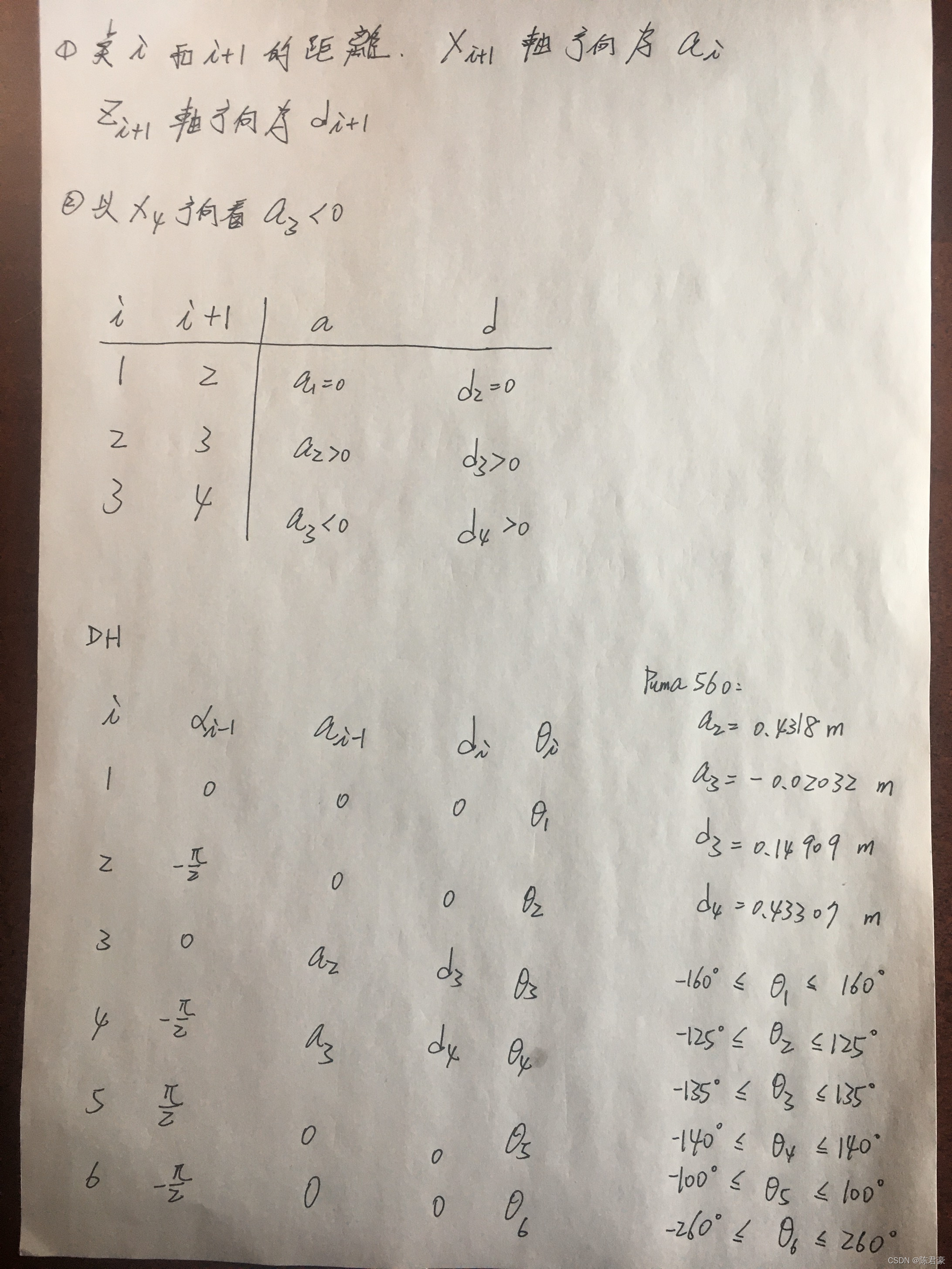 本文主要是介绍Puma560 DH table,希望对大家解决编程问题提供一定的参考价值,需要的开发者们随着小编来一起学习吧!