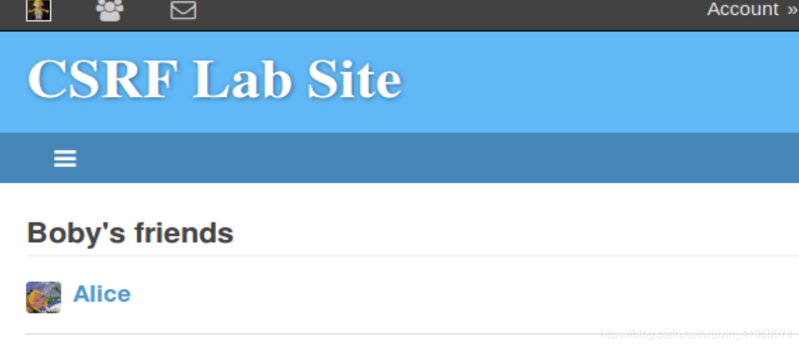 (CSRF攻击成功)于是alice并没有添加boby、boby却已经是alice的好友了: