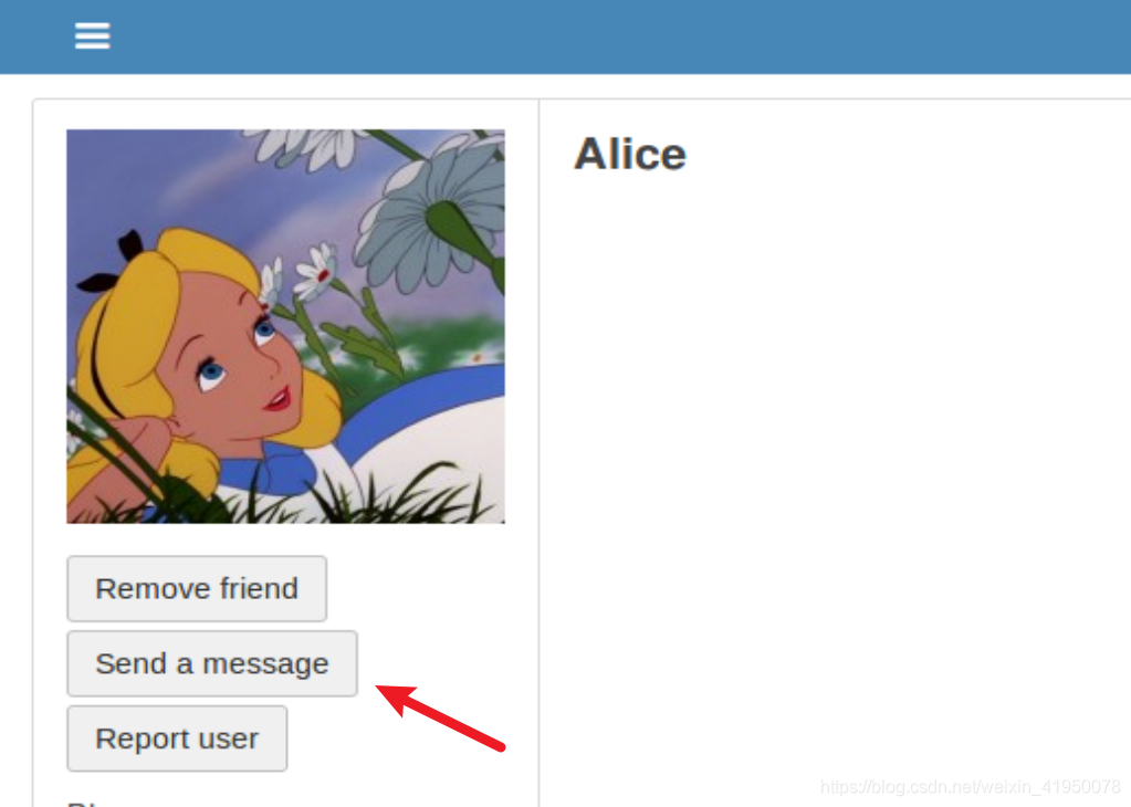 答:boby向alice添加好友的时候、打开控制台,可以看到http请求的URL中、有附带了参数friend=42,就可以拿到alice的用户id了、就可以进行攻击了。