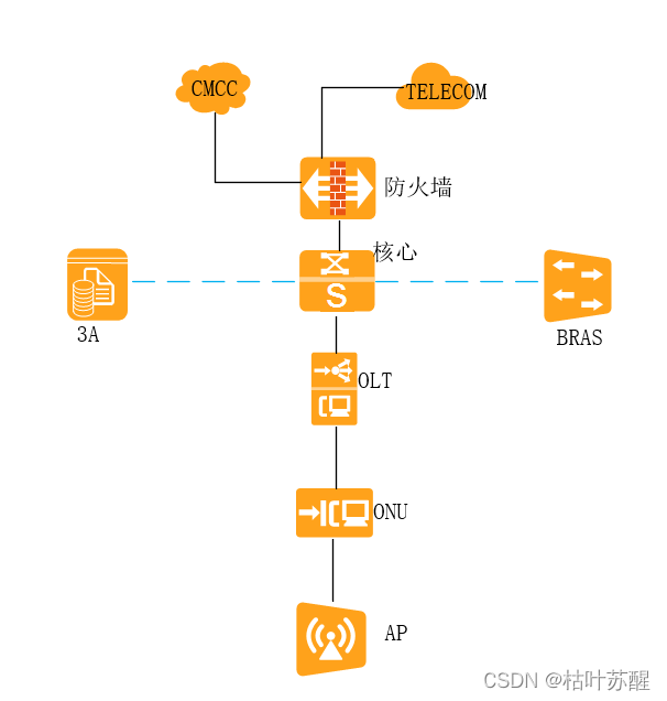 1.客户现网结构如下:AP-ONU-OLT-CORE-FW-ISP(核心板随AC)