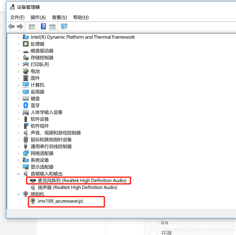 注意:audio 跟 video一定要与自己的电脑一致,查看如下图设备管理器中