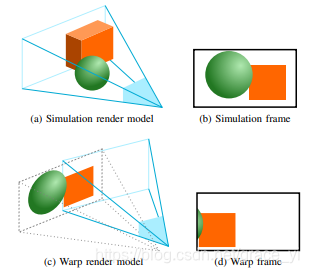 可以看到由于延迟,渲染的图像跟当前的最新viewport是匹配不上的,在做AR项目的时候,我们把上一帧渲染图像渲染上一帧的viewport,然后在当前的viewport显示上一帧的图片,造成了图片wrap的效果,使显示的更加真实。