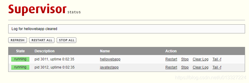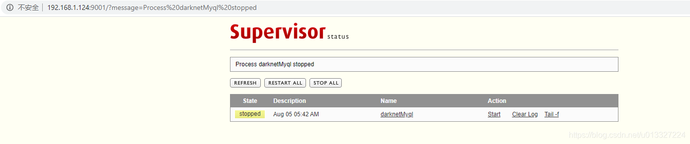 4、可以使用地址:http://localhost:9001访问进入到supervisor的web管理界面,如下图: