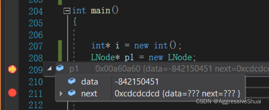 可以看出p1是一个具体的地址,其指向的LNode没有初始化。