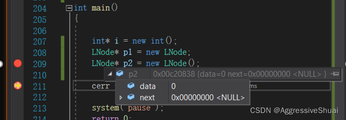 p2也是一个具体的地址,其指向的LNode已经默认初始化。