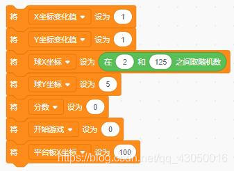 新建变量:小球相关变量、平台板横向X坐标变量、分数、变化坐标值和开始游戏的标识。