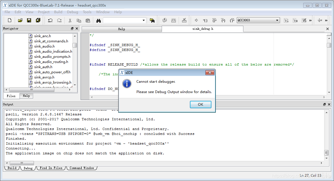 然后选择工作目录下的apps->sink->xxx_qcc300x.xiw,这里我选择的是headset工程,可根据实际情况选择芯片类型