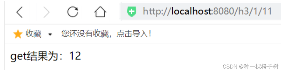 public class RESTfulController {//传统方式:http://localhost:8080/h1?a=1&b=11@RequestMapping("h1")public String test1(int a, int b , Model model){int rslt=a+b;model.addAttribute("msg", "结果为:"+rslt);return "hello";}//RESTful:http://localhost:8080/h2/1/11@RequestMapping("h2/{a}/{b}")public String test2(@PathVariable int a, @PathVariable int b , Model model){int rslt=a+b;model.addAttribute("msg", "结果为:"+rslt);return "hello";}