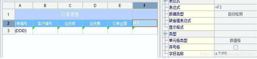 A3 单元格类型为维度格,表达式为 =dd.(DDID), 字段名称设置为:dd.DDID
