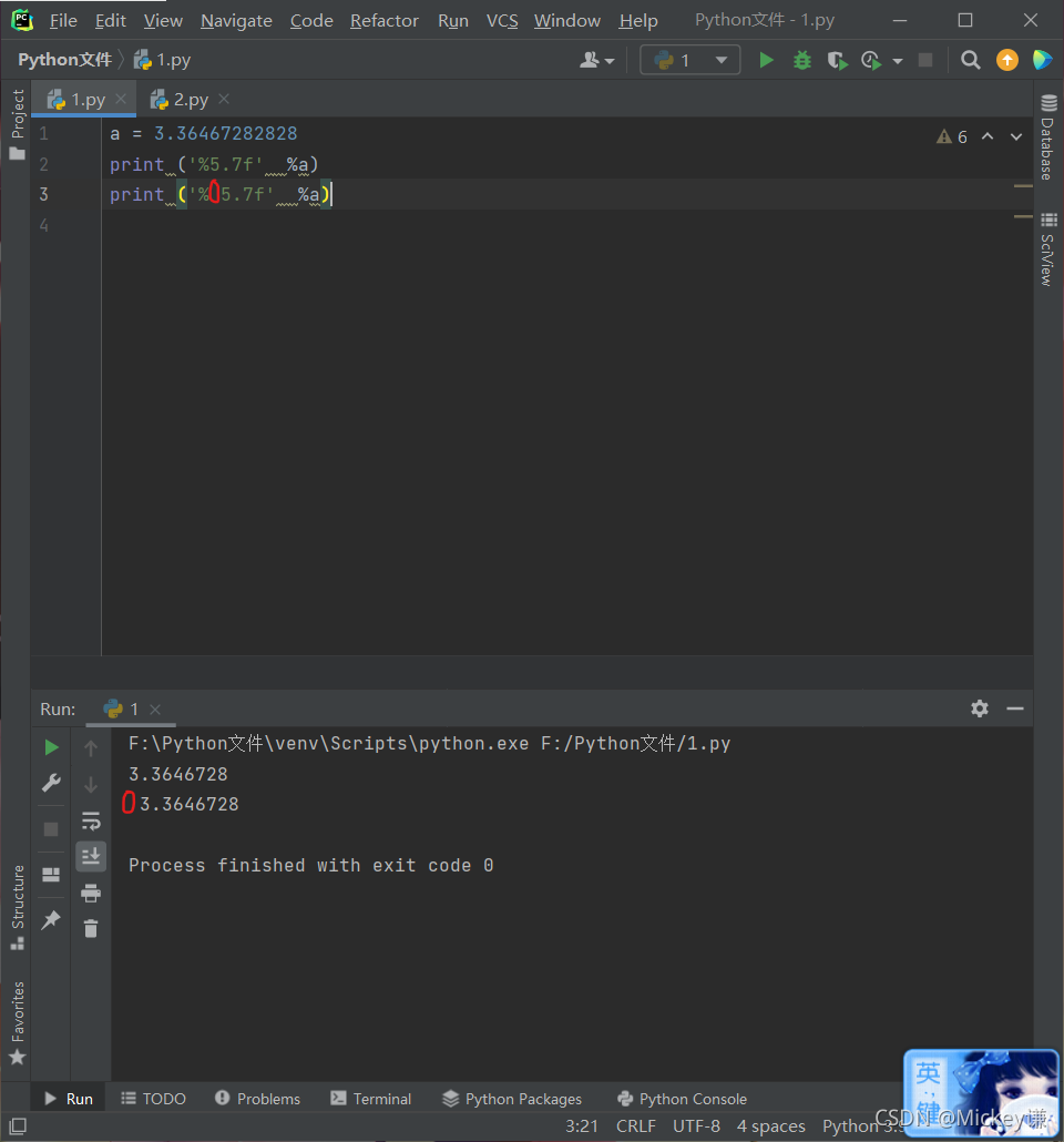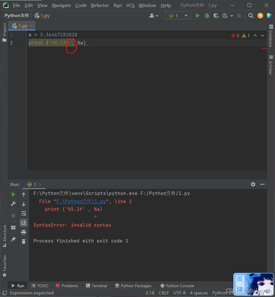2、在使用字符串格式化符号时,要注意不能加逗号,如图: