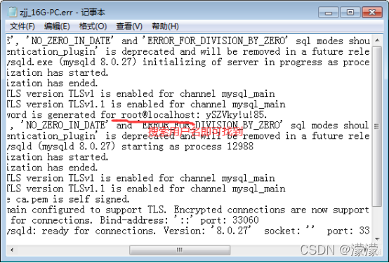 初始化完成后,在e:\mysql\data目录下会生成一个计算机名.err后缀的文件,初始密码可以在此处查看;然后用这个初始密码登录后,更改为新的密码,并创建一个网络用户并授权。