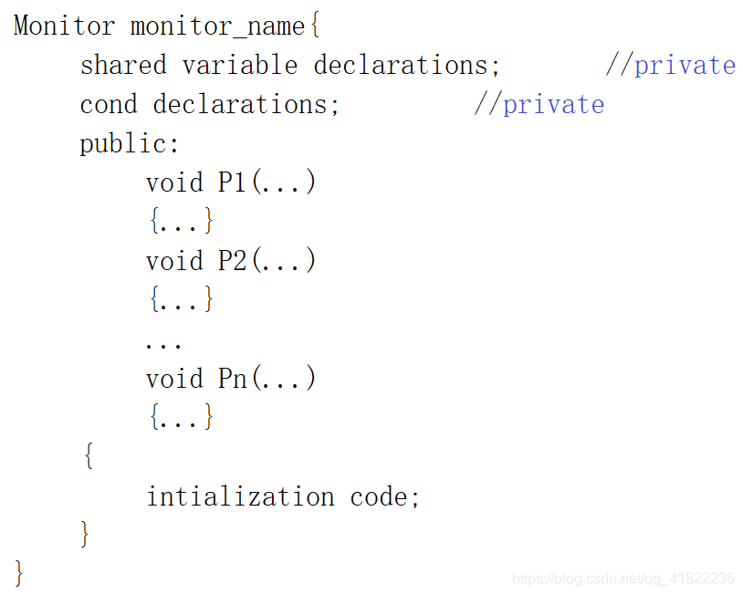 - 管程内部的局部变量只能被管程内部的过程所访问,局部于管程内部的过程只能访问管程内部的变量和形参。