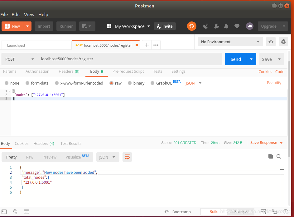 在我们实现共识算法 Consensus Algorithm前,我们一个让节点知道网上邻居节点的方法。网络上的每个节点应该保证网上其它节点的登记。 因此,我们需要更多的端点endpoints: