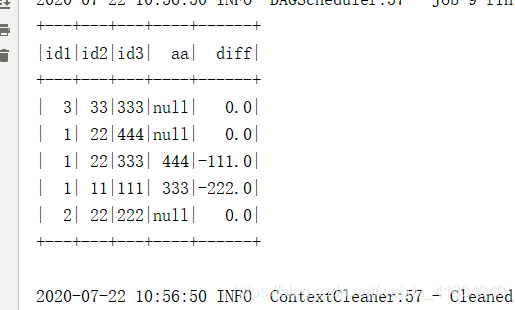 object Tests {def main(args: Array[String]): Unit = {val conf = new SparkConf().setMaster("local[*]").setAppName("etpProcess").set("spark.serializer", "org.apache.spark.serializer.KryoSerializer").registerKryoClasses(Array[Class[_]](EcarData.getClass))val spark = SparkSession.builder().config(conf).getOrCreate()val sc: SparkContext = spark.sparkContextimport spark.implicits._val rdd = sc.textFile("C:\\Users\\sss\\Desktop\\qqq\\aa.txt")val win = Window.partitionBy("id1").orderBy(desc("id3"))val rdd2 = rdd.map(line => {val data = line.split(",", -1)(data(0), data(1), data(2))})val data = rdd2.toDF("id1", "id2", "id3").withColumn("aa", lag("id3", 1).over(win))data.show()val df_difftime = data.withColumn("diff", when(isnull(col("id3") - col("aa")), 0).otherwise((col("id3") - col("aa"))))df_difftime.show()}
