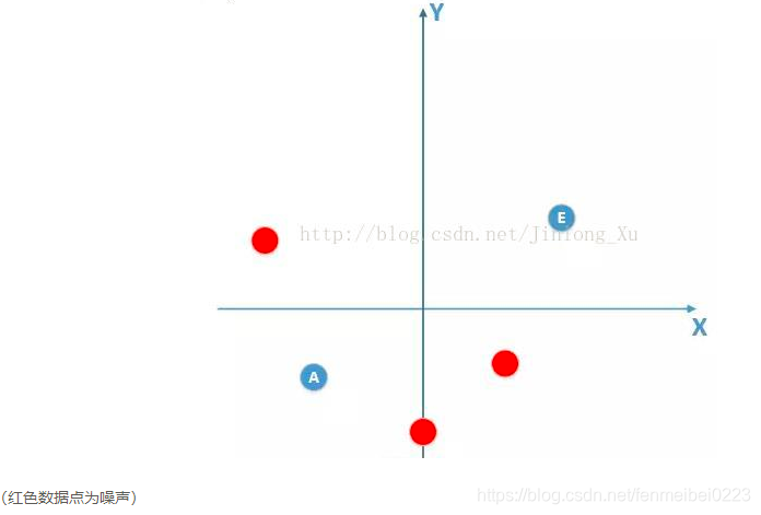意思就是把一些干扰点给训练进去了,而且训练集上整个表现都很好,但是由于测试集里面不包含干扰点(即使包含了也是错的),导致测试输出也还是十分的差劲。引用两幅图可以更加直观。