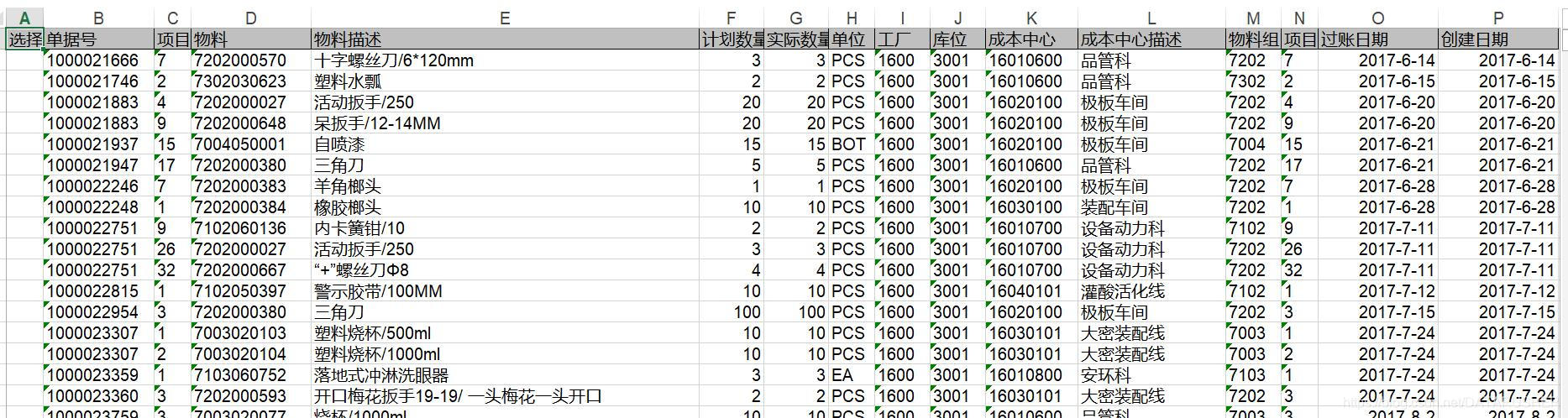 1、将清单中970个物料号对应的领料记录导出来(SAP系统)