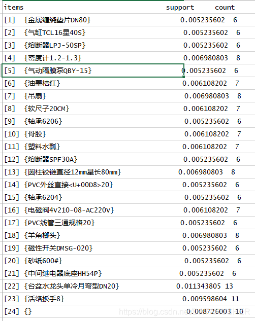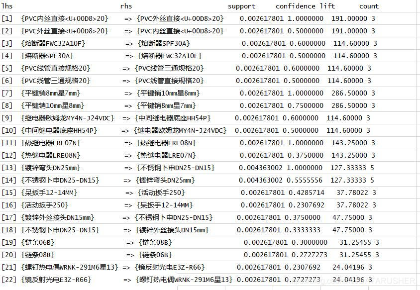 二、根据SAP的领用记录,分析货架上的五金备件的关联规则(即每次领用A物料的同时也会领用B物料),参考“啤酒和尿布”案例,合理布局货架位置
