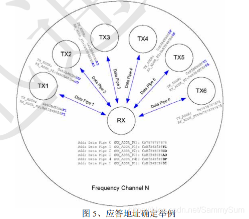 NRF24L01是一个常用的2.4G无线通信模块,经常在项目开发中会用到。用NRF24L01做一对一通信就比较多,但是一对多通信却比较少。我们都知道NRF24L01在接收模式下可以接收6个不同通道的数据。每个数据通道使用不同的地址,但是共用相同的频道。也就是说6个不同的NRF24L01设置为发送模式后可以与同一个设置为接收模式的NRF24L01进行通信,而设置为接收模式的NRF24L01可以对这6个发射端进行识别。数据通道0是唯一的一个可以配置为40位自身地址的数据通道。通道1~5都为8位自身地址和32位公用地址。