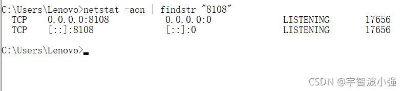 2.1.2 假设运行的jar文件的端口号为“8108”,查看该进程的PID