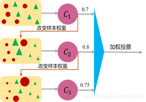 一般集成学习会通过重采样获得一定数量的样本,然后训练多个弱学习器,采用投票法,即“少数服从多数”原则来选择分类结果,当少数学习器出现错误时,也可以通过多数学习器来纠正结果。
