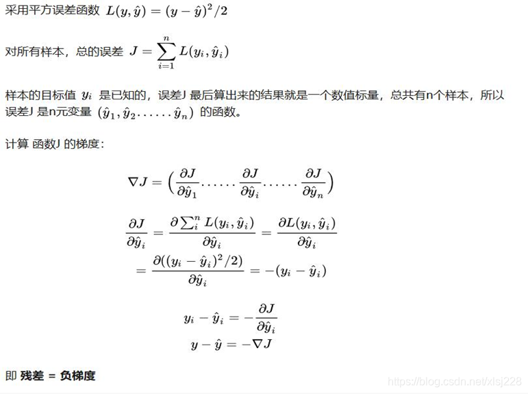 使用损失函数的负梯度在当前模型 Fm-1(x)上的值近似代替残差:![]()