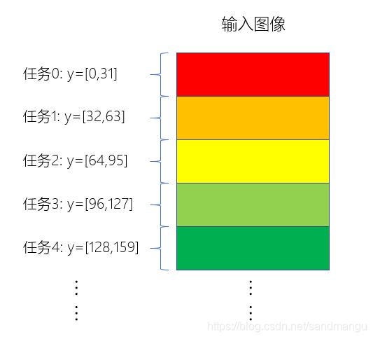 接下来把image_rotate_float_ispc()改成多任务版,先把输入图像分成多个小块,每个任务处理32像素高度的图像