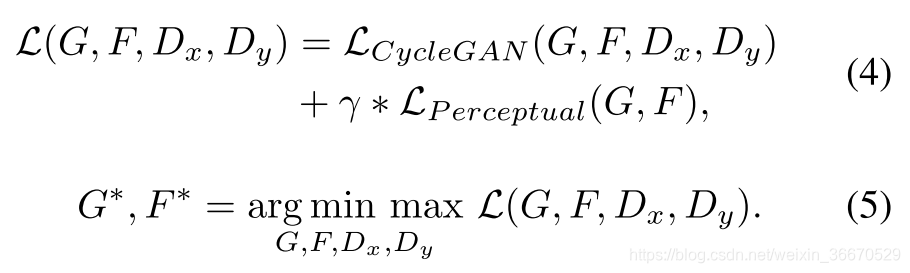 是CycleGAN [37]体系结构的全部目标,D代表鉴别器,γ控制循环感知一致性损失的效果: