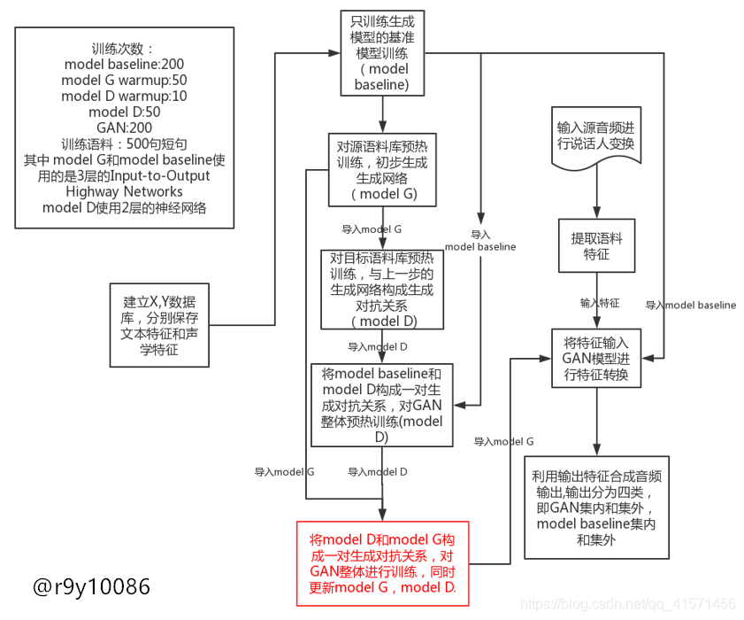 本文中,模型训练的方法将以merlin和gantts举例说明。其中,gantts训练过程中的model baseline即可等价为merlin,训练流程如下: