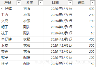 简化的销售情况表,记录了该服装门店在1月1日、1月2日中销量情况。全部数据如下: