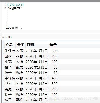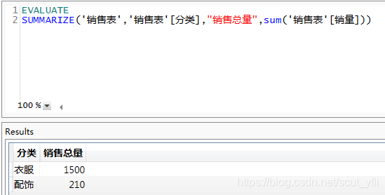 SUMMARIZE('销售表','销售表'[分类],"销售总量",sum('销售表'[销量]))