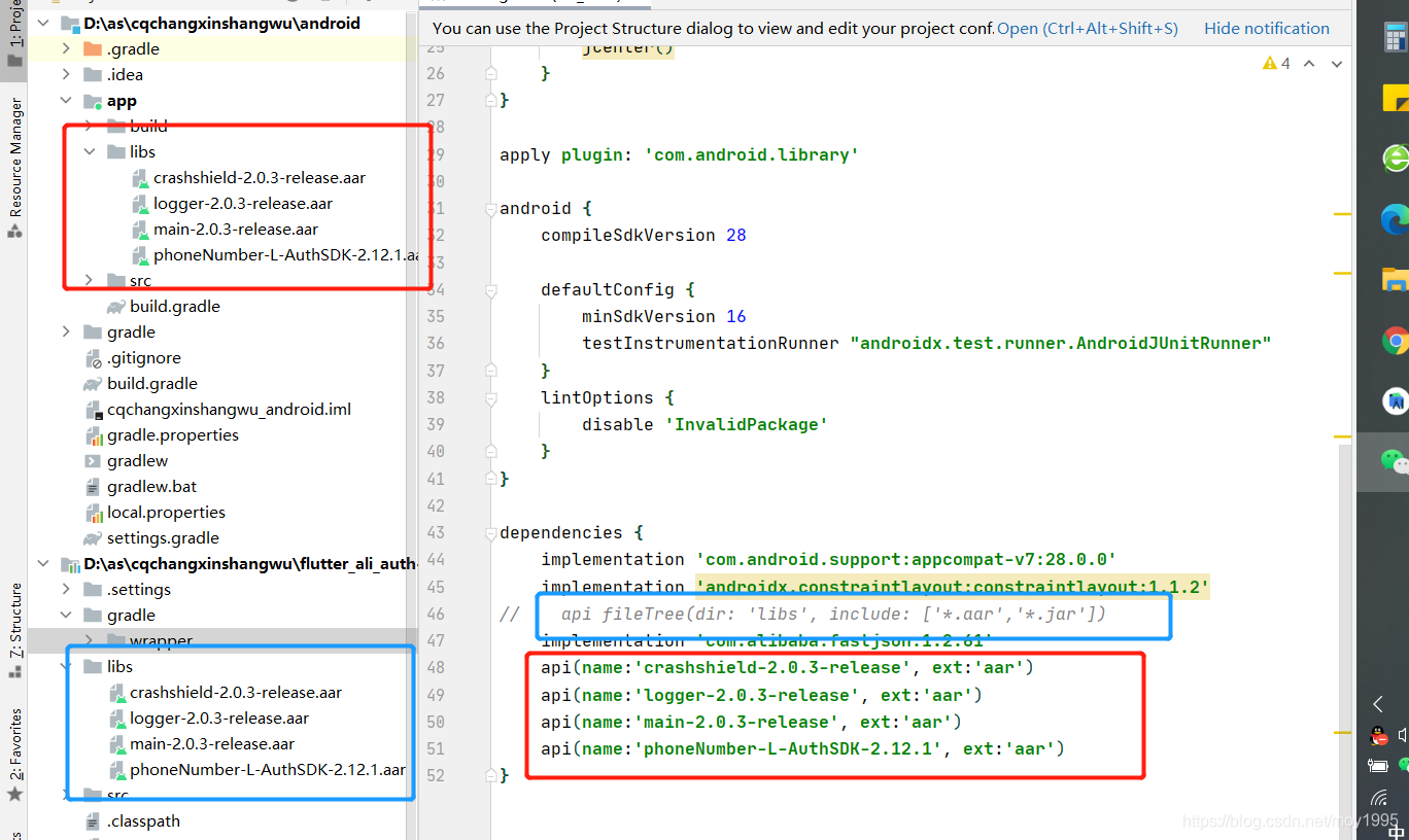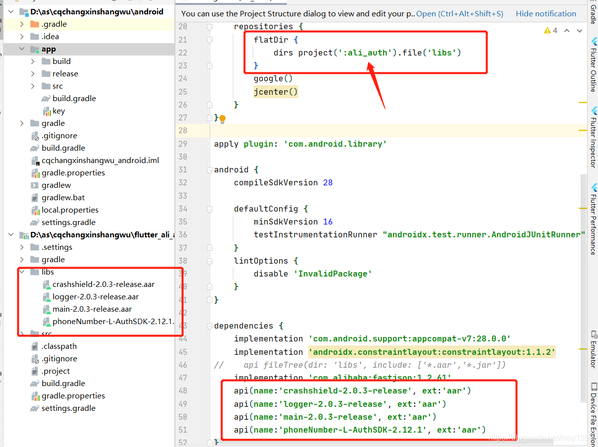 rootProject.allprojects {repositories {flatDir {dirs project(':project_name').file('libs')}google()jcenter()}