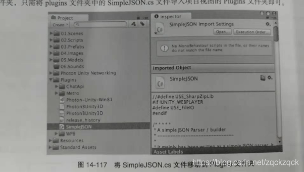 如果想在Unity中使用JSON,需要可以分拆和构建JSON消息的JSON解析器。Unity中可以使用的JSON解析器有SimpleJSON、LitJSON、JSONObject、JsonFX等,本书使用的是SimpleJSON解析器。