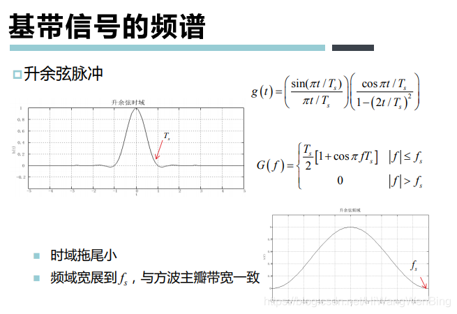 - 升余弦脉冲类似与余弦的”上半部“,因此称为”升余弦“