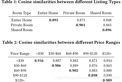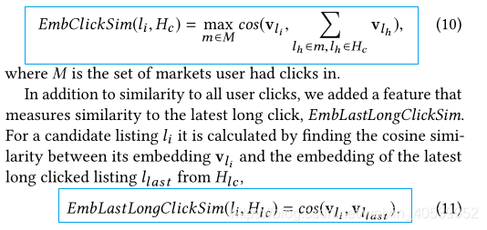 有了相似房源列表就够了吗?够了,但是对于实时推荐很明显不是,第一,比如说,一个用户当前正在搜索洛杉矶,并且该用户之前有点击过纽约和伦敦的民宿,那么就可以结合之前的点击信息,来进一步寻找相似的房源(使用余弦相似度度量)。第二,Airbnb还将用户是否点击相似房源的操作也考虑了进来,简单来说,就是我推荐的东西如果没有被点击,证明推荐有问题,那和其类似的房源就最好不要再出现。