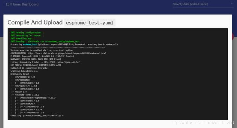 等安装完成后输入:esphome esphome_config/ dashboard启动ESPHome的web设置向导。