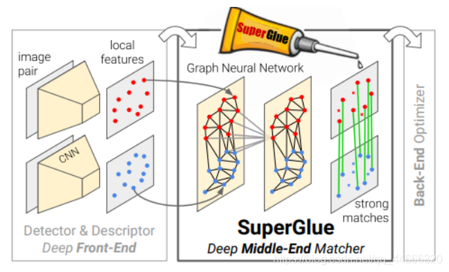 - 基于注意力机制提出了一种灵活的内容聚合机制,这使得SuperGlue能够同时感知潜在的3D场景以及进行特征匹配。