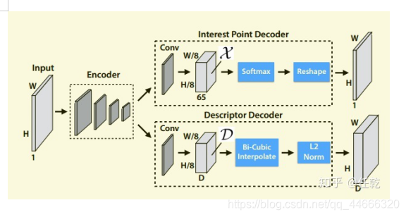 SuperPoint网络是作者在本篇文章中提出的,给了较为详细的介绍,网络的结构如下图: