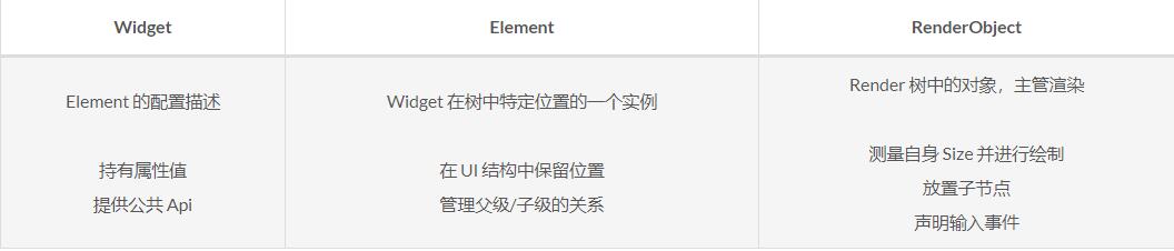 包含Emmber(系统底层,也叫嵌入层)、Engine(Skia、Text、Dart)、FrameWork(动画、动作等API层,Material-安卓控件组,Cupertino-苹果控件组)三层;
