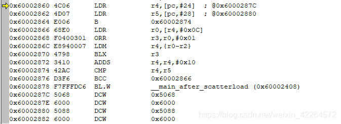 | 0x60005074 | 0x60004ca0 | __scatterload_copy入口地址 |