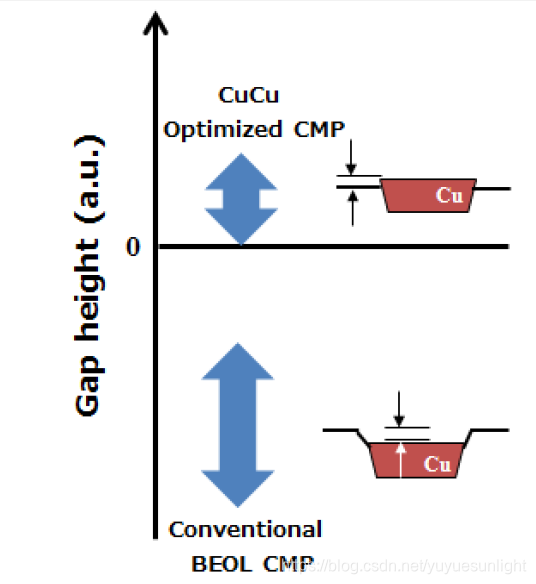为了制造鲁棒性的铜铜连接,为了控制表面平整度关于铜连接引脚是一个重要的因素。当传统的BEOL CMP过程被使用,表面的CU趋向来凹槽为有些程度取决于铜线宽度。关心是电气连接关于凹进铜引脚可能不利影响当他们被绑定。另一方面,当我们控制的CMP过程,它是故意制造很平或者轻溢出铜引脚,被使用,更好铜铜电气连接被期望作为显示在图2.在这个研究中,容差关于铜溢出从观点关于绑定过程是数量计算。