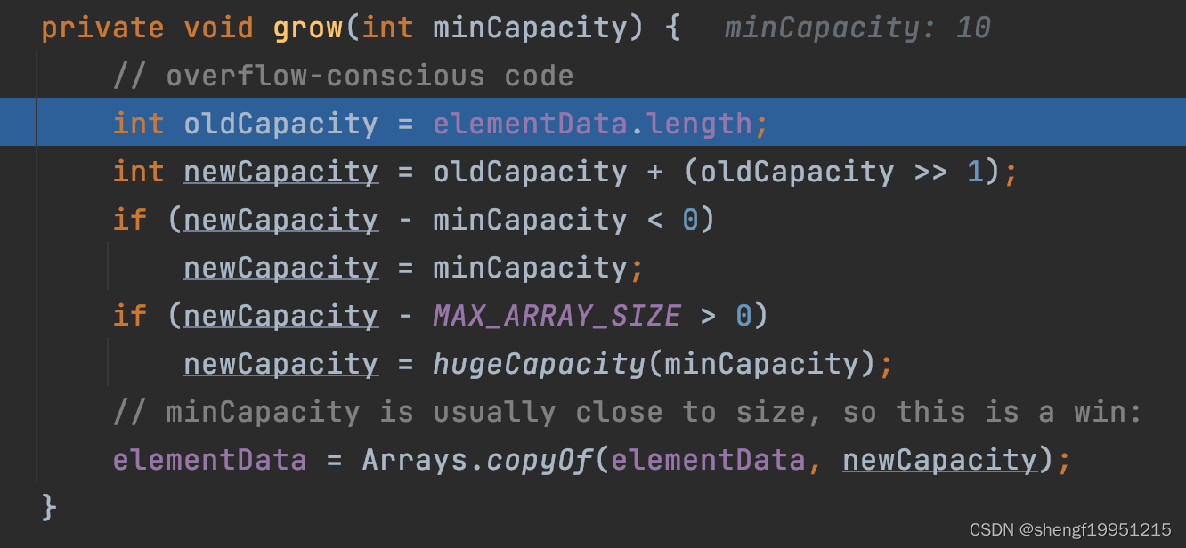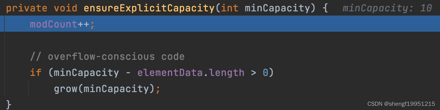 3、如果数组为空,则minCapacity为DEFAULT_CAPACITY,即为10