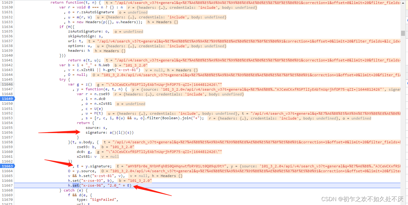 这不但 x-zse-96的加密入口找到了,d_c0的好像也就在这一块附件。然后接下来就开始一点点的扣代码或者拆解代码。