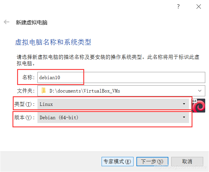 版本选 Debian (64-bit)