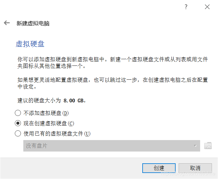 硬盘这里根据需要选择。默认选8GB。