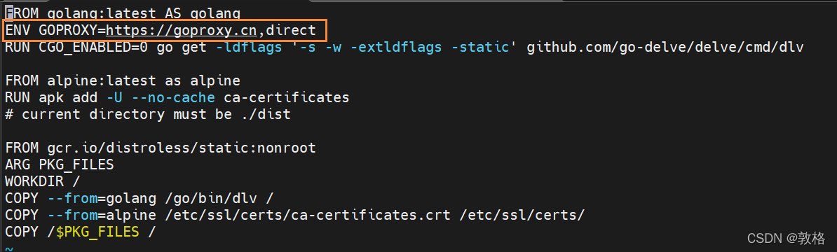 2.3. 修改Dockerfile中的GOPROXY为国内镜像源