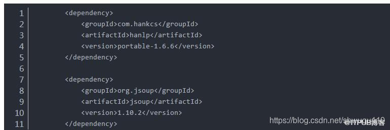 首先,添加 HanLP 的依赖:( jsoup 是为了处理题干中的 html 标签,去除 html 标签得到纯文本的题干内容)